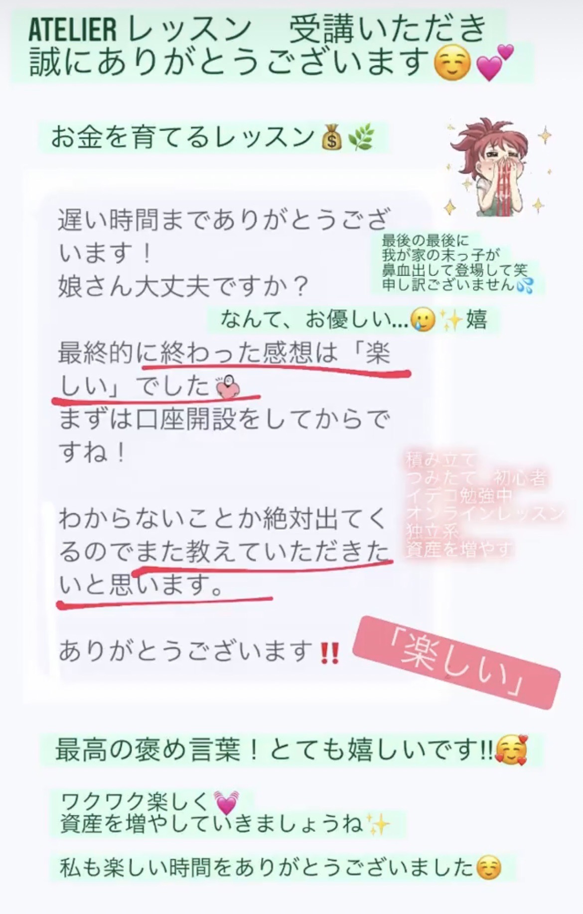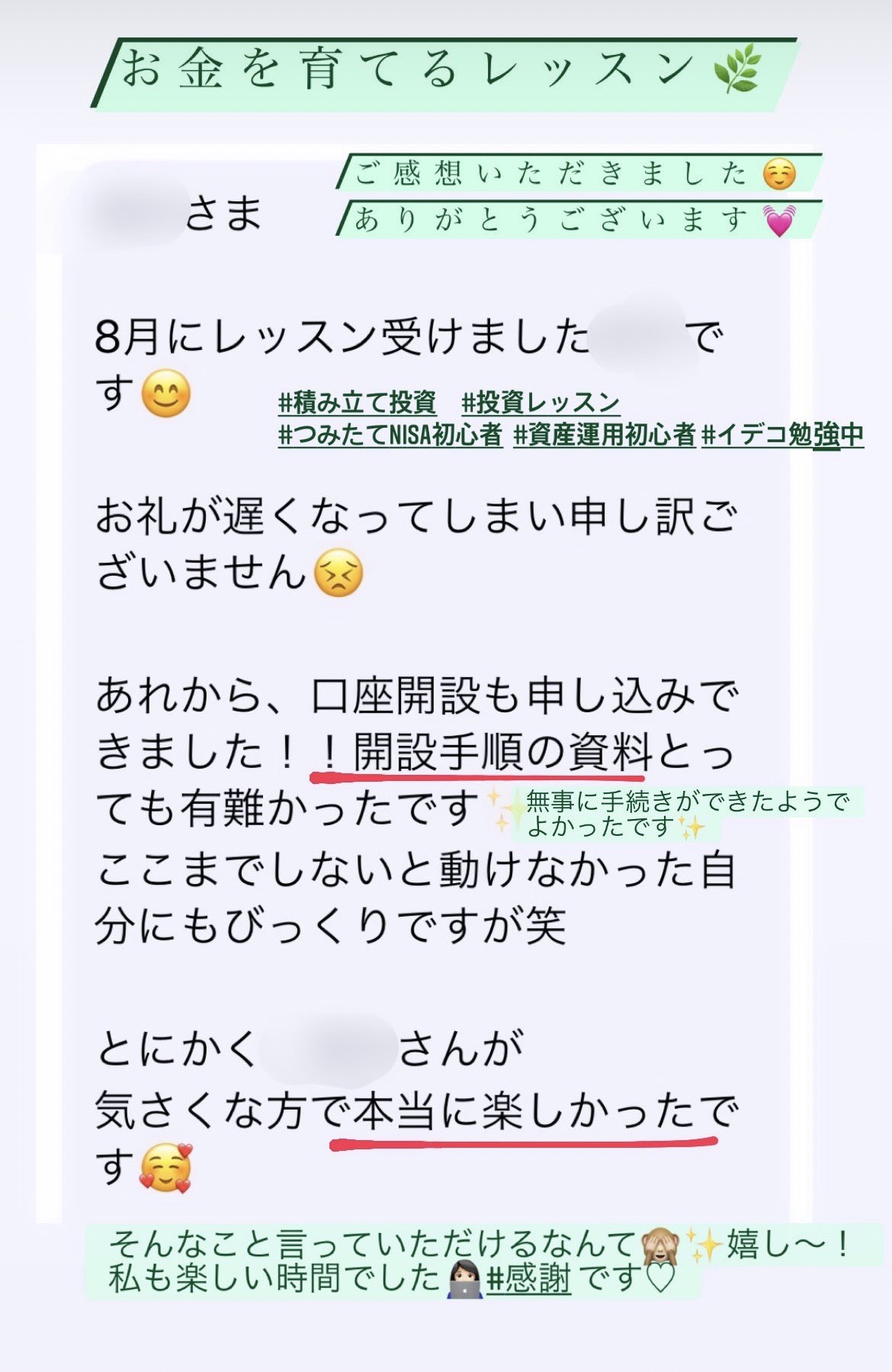 お金を育てる基礎知識のレッスンを行っております。